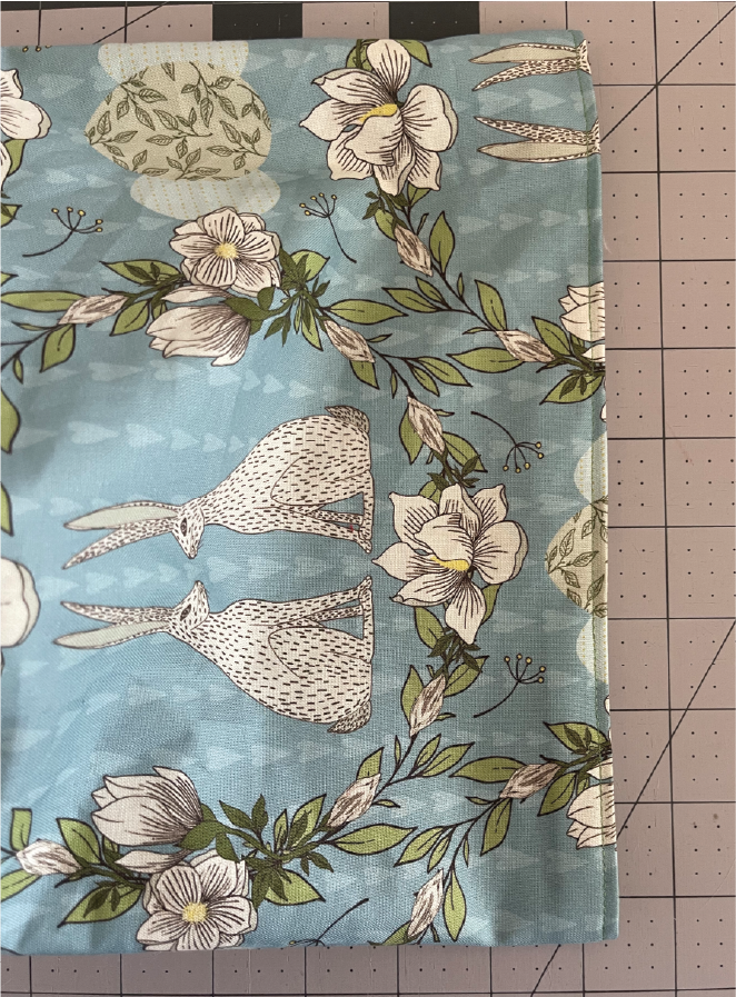 Center the 11 1/2” x 20” interfacing piece onto the wrong side of the exterior fabric piece. Follow the instructions on your interfacing to adhere the interfacing to the exterior fabric.